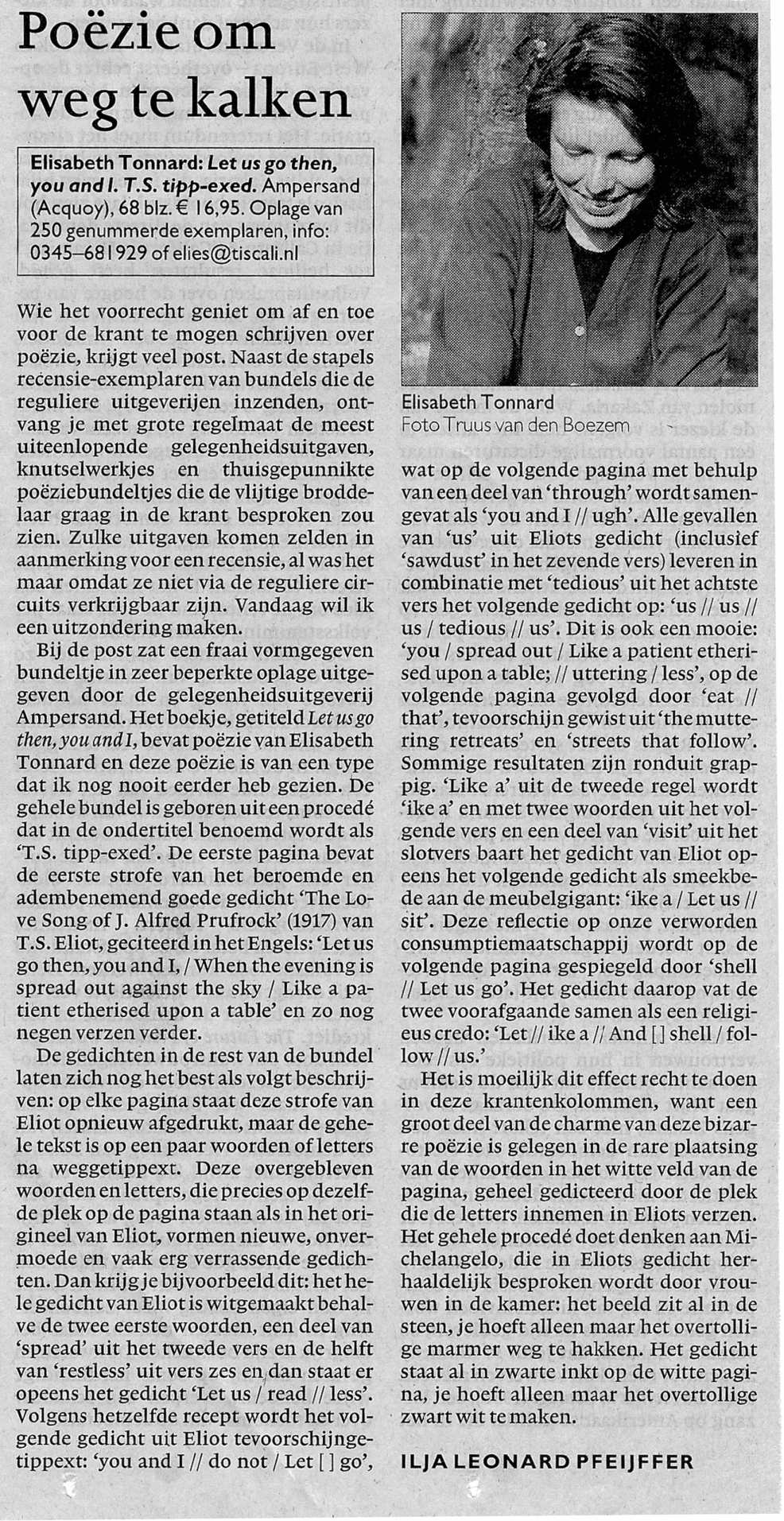 Ilja Leonard Pfeijffer over Let us go then, you and I, NRC Handelsblad, 29 augustus 2003.