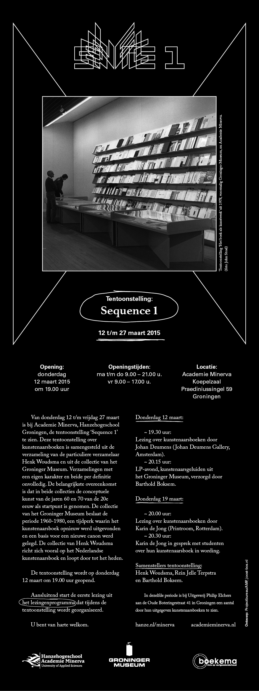 The exhibition Sequence I aims to show Dutch artists’ books in an international context. It draws from the collections of the Groninger Museum and private collector Henk Woudsma and is curated by Henk Woudsma, Rein Jelle Terpstra and Barthold Boksem. See the invite here and a list of works on view here.