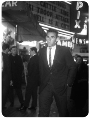 Jason Fulford (IANN magazine Vol. 7, 2011)Selle’s unsuspecting subjects walking alone and caught in the light of the flash, become the multitude of alienated souls wandering “the dark woods” of the city. What is amazing about this work is how, accompanied by the suggestion of the text, the environs surrounding each subject heighten the metaphor. Movie marquees caught in the upper corners of the frames read movie titles of violence and doom; “Ring of Fire,” “Hell is a City,” “…from Hell,” “Petrified World, “Nightfall,” “Corridors of Blood.” Jeffrey Ladd, 5b4 blog, November 14, 2009