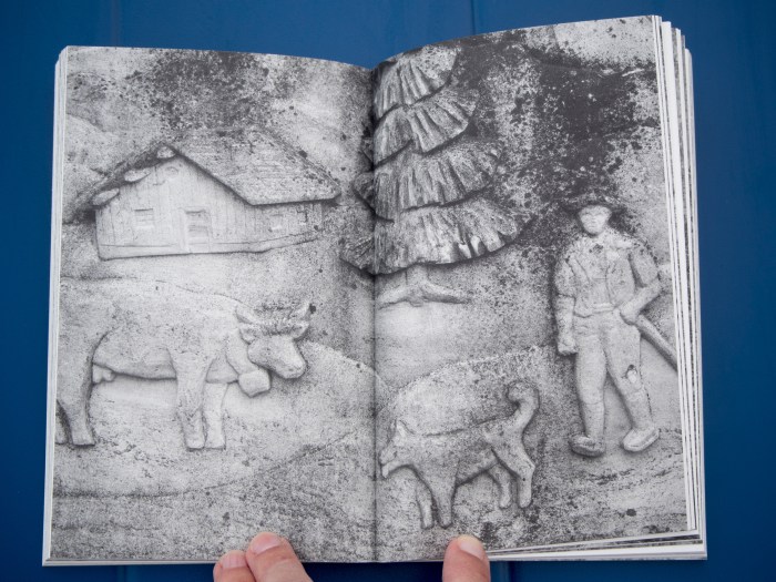 The book draws on excerpts from Walser’s asylum file and on photographs that I took at the graveyard in Herisau where Walser is buried. The photographs show scenes depicted on the gravestones surrounding Walser’s grave. The dreamy landscapes and paths encountered there seemed like a continuance of Robert Walser’s walk to me.